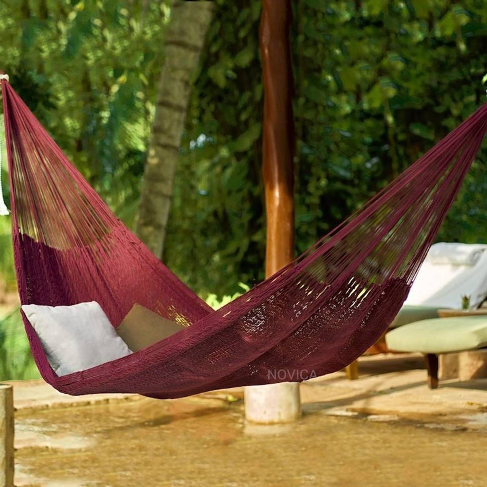 Hand Woven Cotton Rope Hammock Single 'Uxmal Mulberry' Item ID: 2671640253