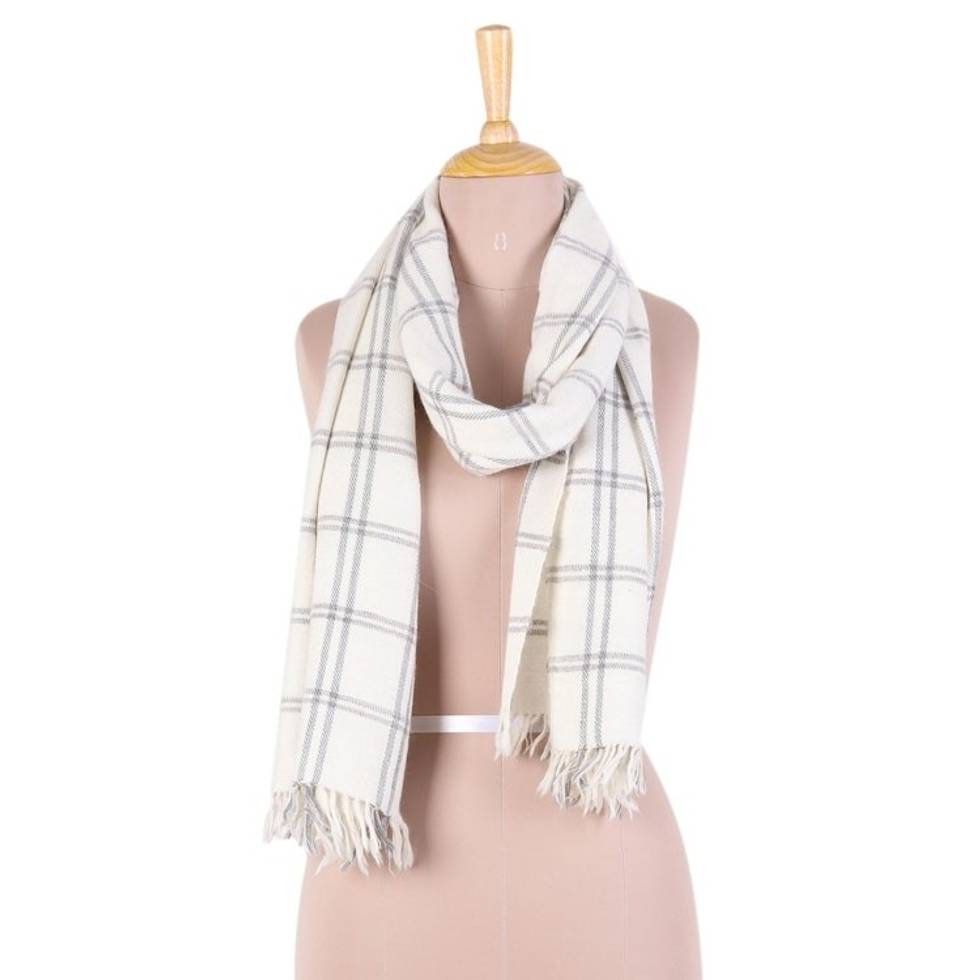 Hand Woven Eggshell Wool Blend Checkered Scarf from India 'Himalayan Journey' Item ID: 2671791116
