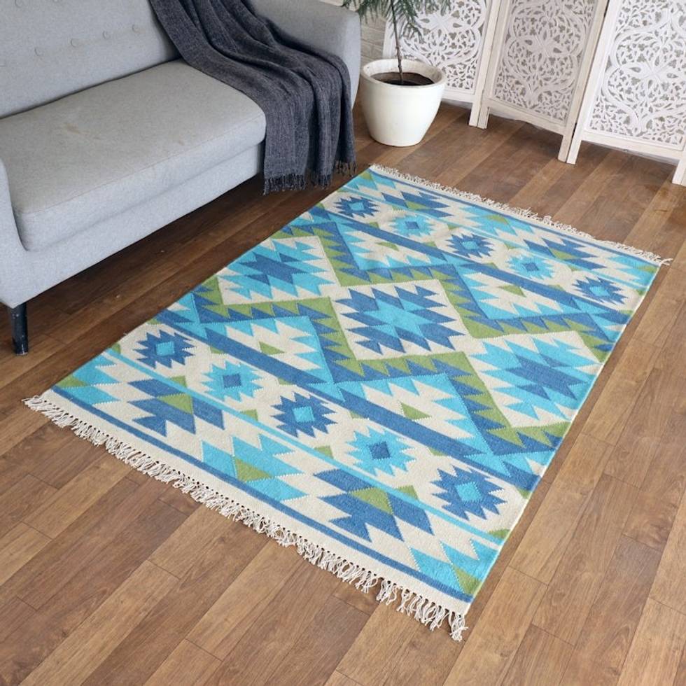 “We use wool upon a cotton base to prepare kilim dhurries. We get wool easily from the market and then we send it for color dyeing. After the color dyeing is complete then it finally goes to the weaving process. After weaving then it goes for finishing. It is a very lengthy process to complete one particular rug. My favorite thing is to create and develop a new design and colors for our products. We always face challenges in this field, because there is lots of competition in our industry for new creativity.