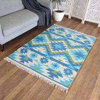 Hand-Woven Flat Weave Wool Area Rug 4x6 'Rolling Hills' Item ID: 2669943630