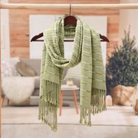 Hand-Woven Hill Tribe Fringed Striped Cotton and Rayon Scarf 'Cozy Olive' Item ID: 2671796527
