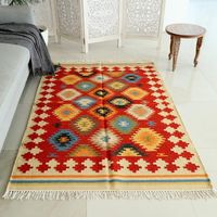 Hand-Woven Indian Wool Area Rug 'Dancing Stars' Item ID: 2669892267
