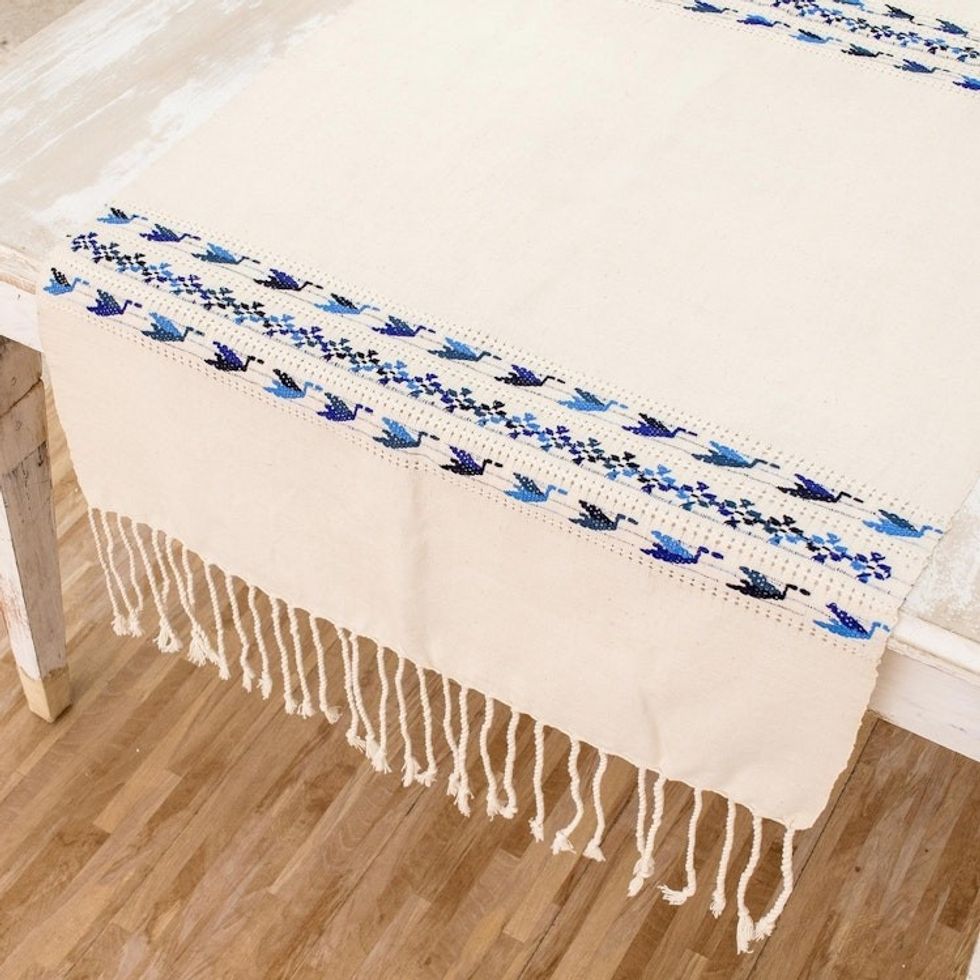 Hand Woven Ivory Table Runner with Images of Birds 'Mountain Birds' Item ID: 2671771870