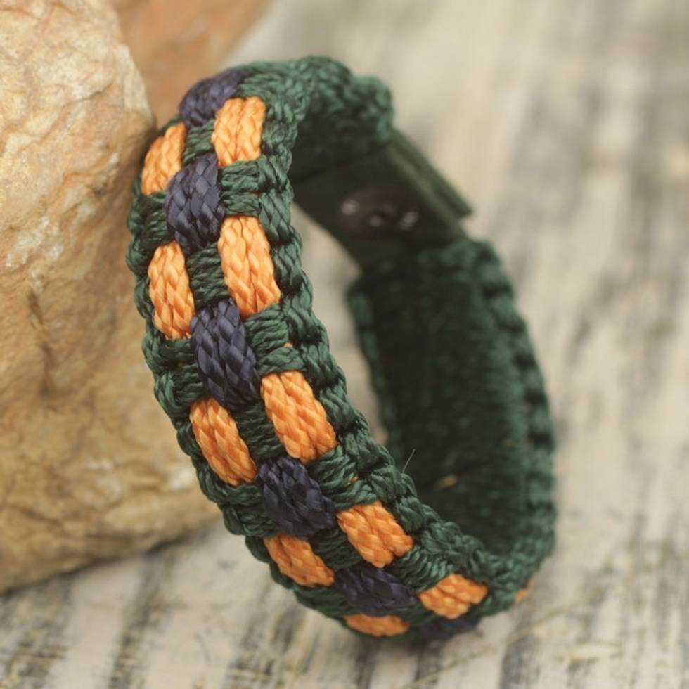 Hand Woven Men's Cord Bracelet in Green, Navy and Gold 'Golden Dot' Item ID: 2671803815