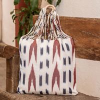 Hand-Woven Patterned Cotton Tote Bag in Ivory Blue and Brown 'Casual Look' Item ID: 2671772370