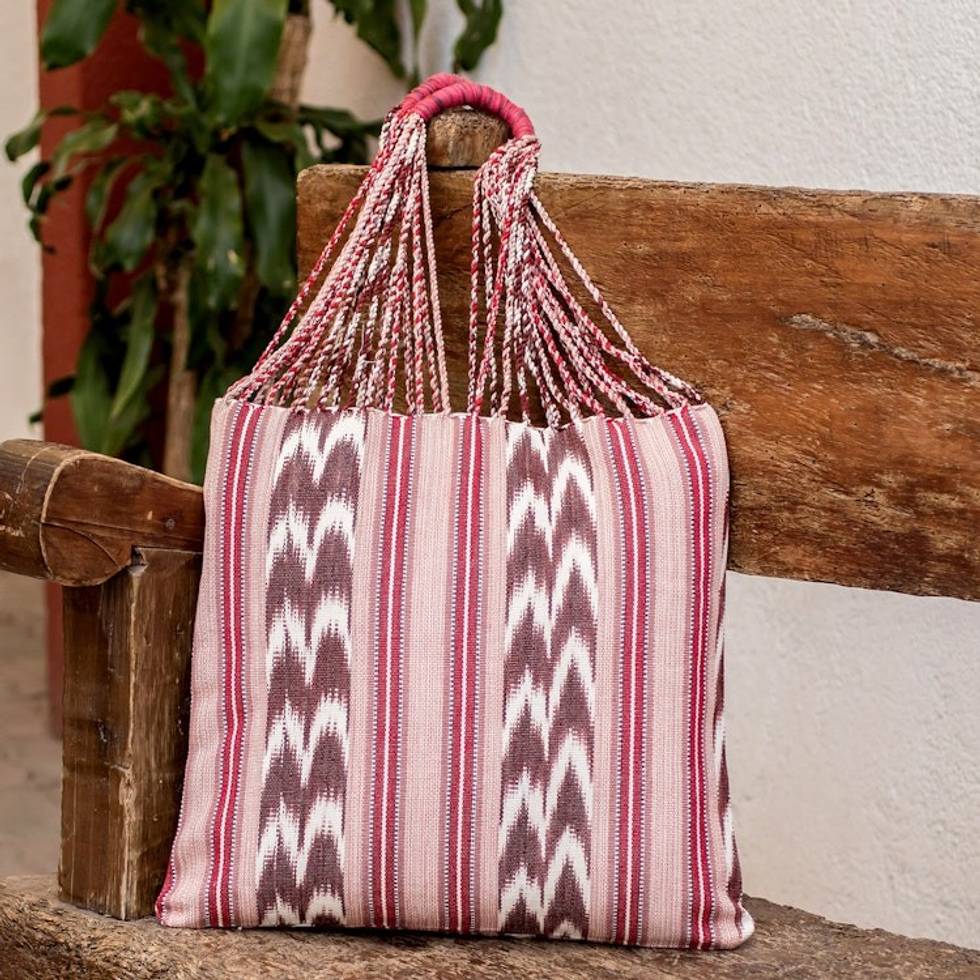 Hand-Woven Patterned Cotton Tote Bag in Red Brown and Ivory 'Natural Burgundy' Item ID: 2671771577