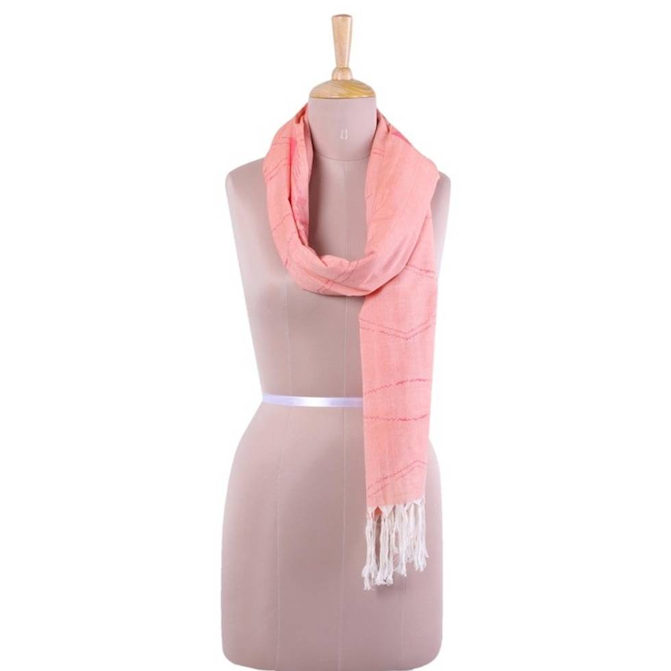 Hand Woven Peach 100 Cotton Wrap Scarf from India 'Whimsical in Peach' Item ID: 2671790328