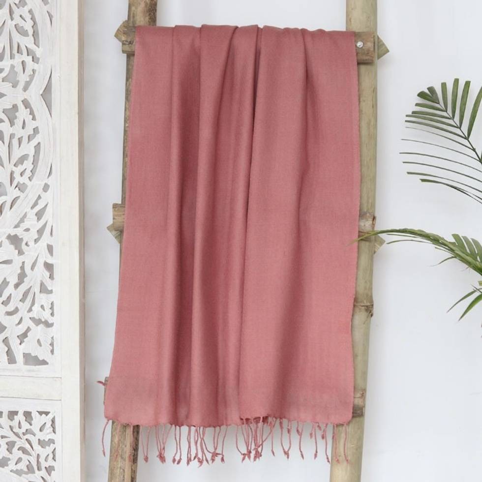 Hand-Woven Pink Wool Shawl from India 'Kashmir Rose' Item ID: 2669944285