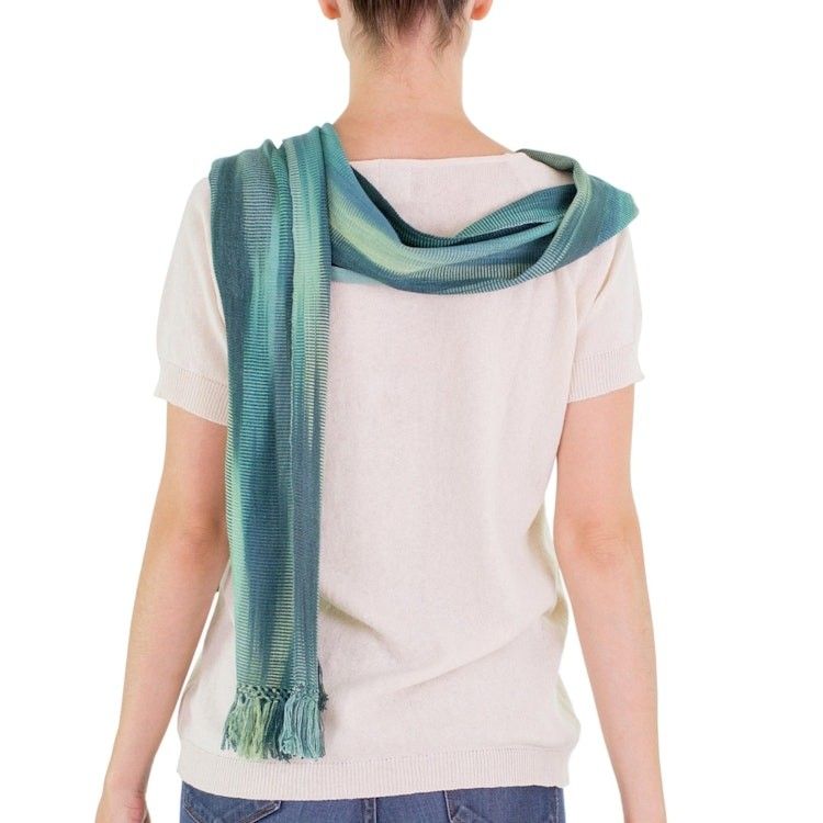Hand Woven Rayon Scarf in Light and Dark Green 'Iridescent Emerald' Item ID: 2671780102