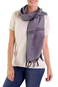 Hand Woven Scarf from Guatemala in Black and White 'Mesmerizing Black White' Item ID: 2671779049