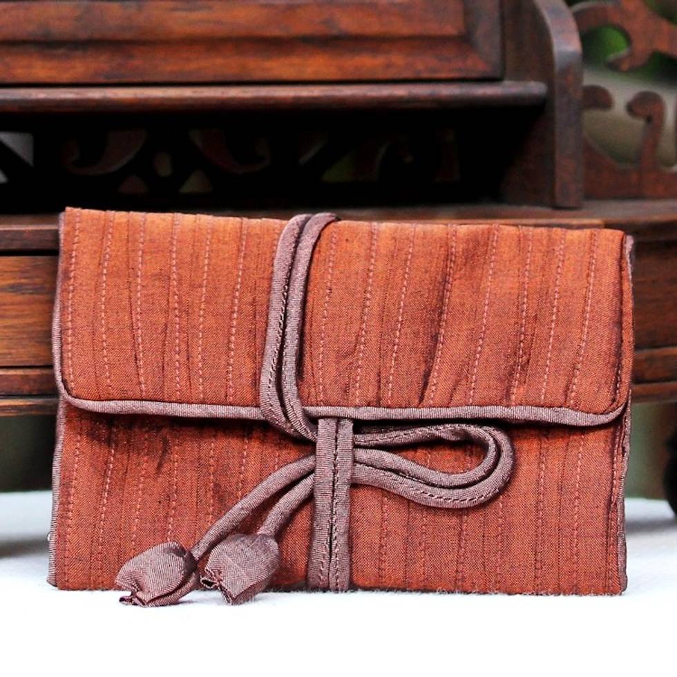 Hand Woven Silk and Rayon Blend Thai Jewelry Roll in Russet 'Enchanted Journey in Russet' Item ID: 2671801692