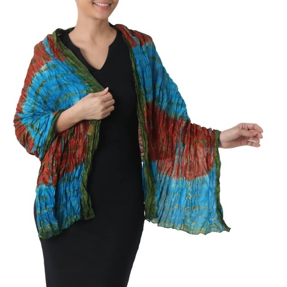 Hand Woven Tie Dye Silk Shawl in Multicolor from Thailand 'Dreamlike Dance' Item ID: 2671802237