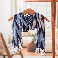 Hand-Woven White and Blue Rayon Scarf with Zigzag Pattern 'The Ocean' Item ID: 2671771881