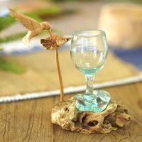 Handblown Glass and Jempinis Wood Hummingbird Sculpture 'Hummingbird Wine' Item ID: 2671747136