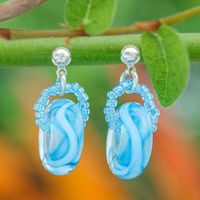 "Immerse yourself in the exquisite artistry of these captivating dangle earrings crafted with precision using the handblown glass technique. They boast vibrant blue hues and intricate swirl patterns that effortlessly elevate your ensemble. With delicate glass beads and lustrous sterling silver posts, Thai artisan Alexx Cheng's stunning creation exudes an aura of timeless elegance, making it a must-have accessory for any occasion."