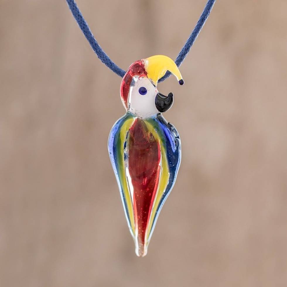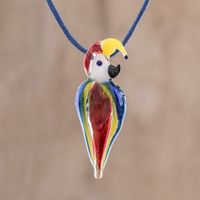 Handblown Glass Macaw Pendant Necklace from Costa Rica 'Beautiful Macaw' Item ID: 2669933588