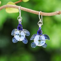 Handblown Glass Turtle Dangle Earrings from Thailand 'Turtle Glam' Item ID: 2669926312