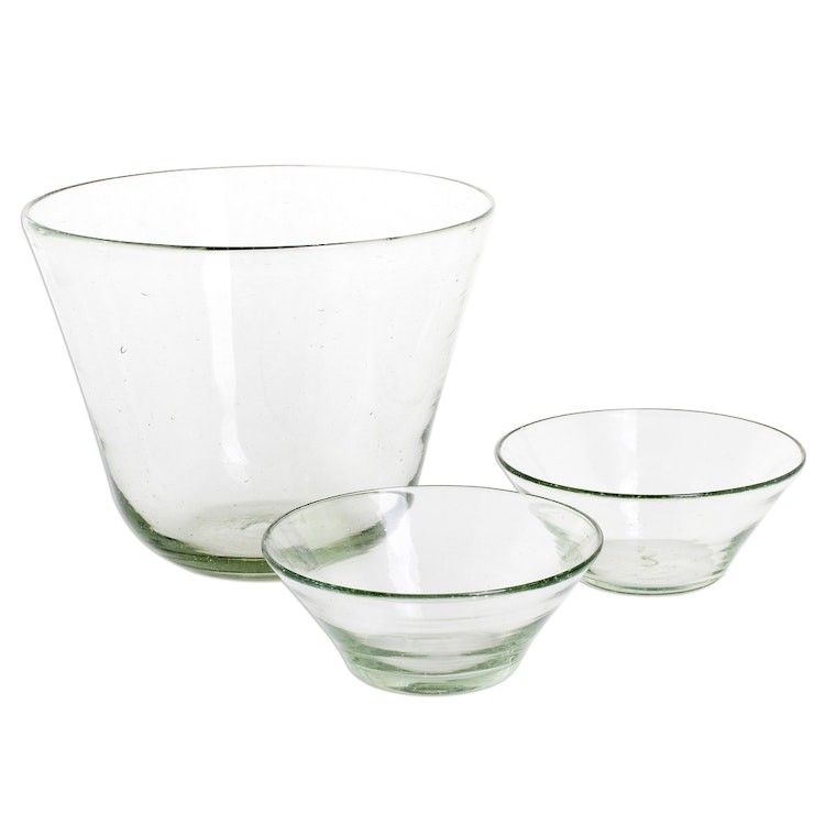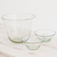 Handblown Recycled Clear Glass Salad Bowls Set of 3 'Clear Delight' Item ID: 2671779806