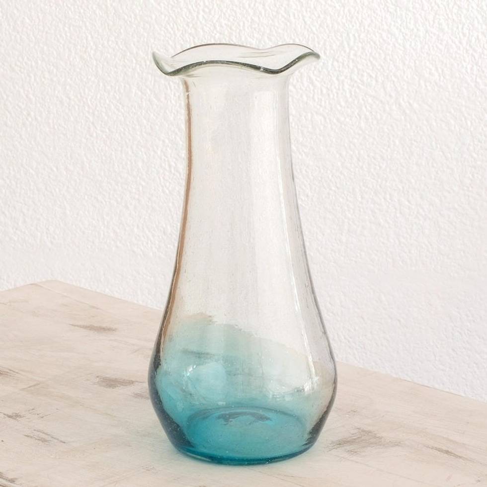 Handblown Recycled Glass Vase with Blue Accent 'Glistening Sea' Item ID: 2671777162