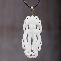 Handcarved Bone Octopus Pendant Necklace made in Indonesia 'Great Octopus' Item ID: 2671821173