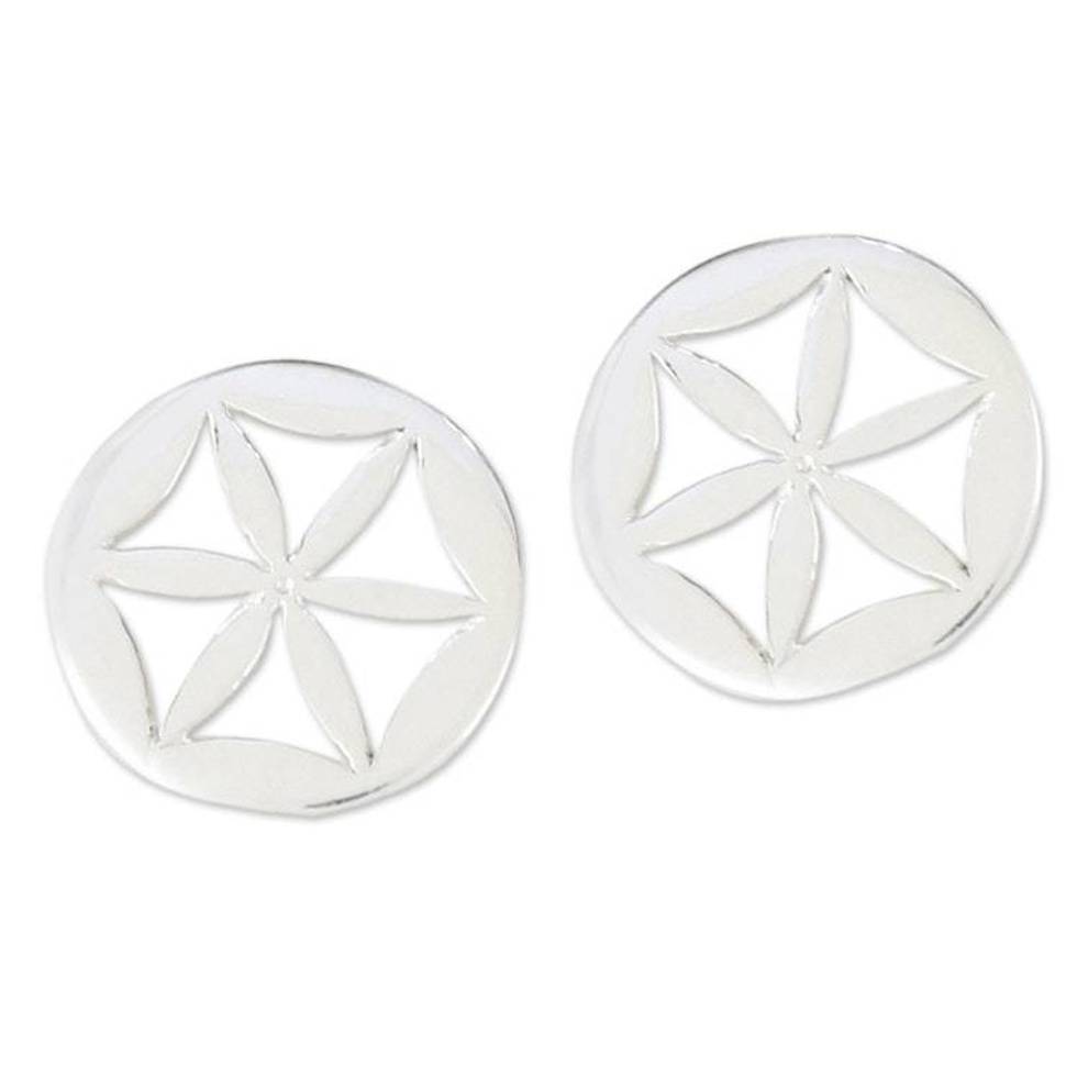 Handcrafted 925 Sterling Silver Floral Stud Earrings 'Flower Circles' Item ID: 2676650626
