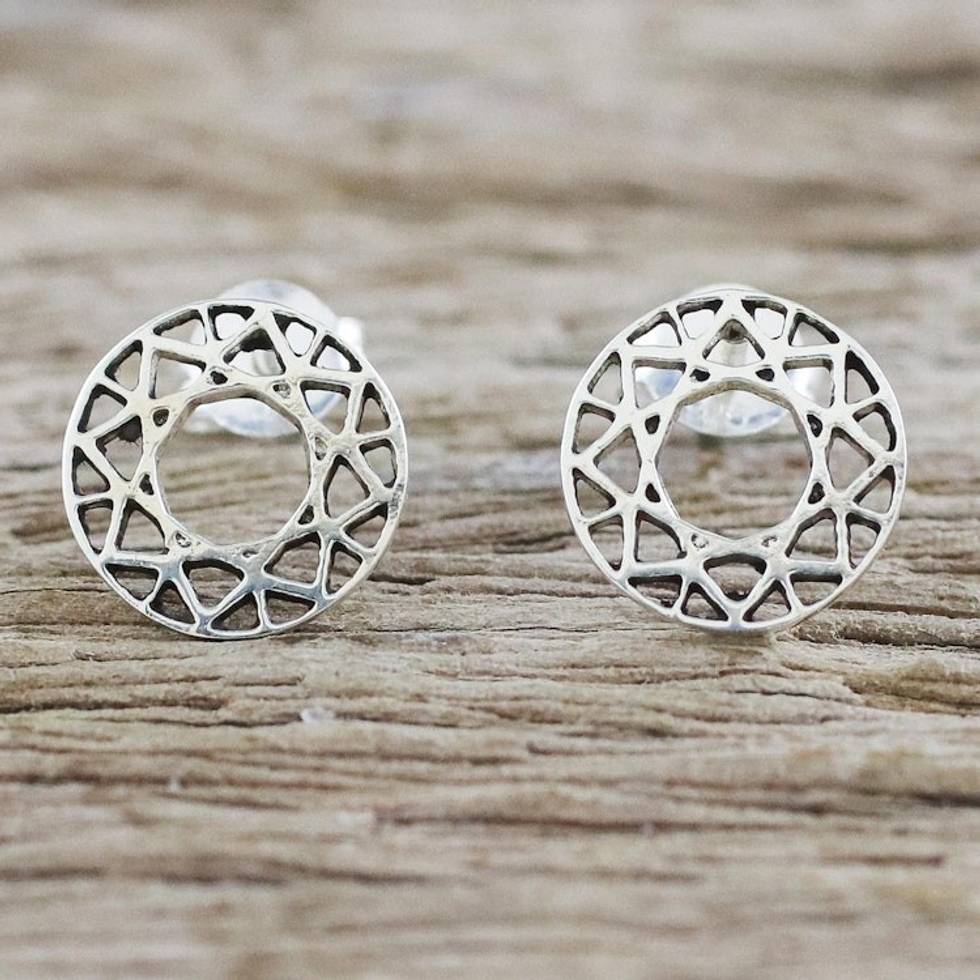 Handcrafted 925 Sterling Silver Stud Earrings from Thailand 'Attractive Circles' Item ID: 2671801293