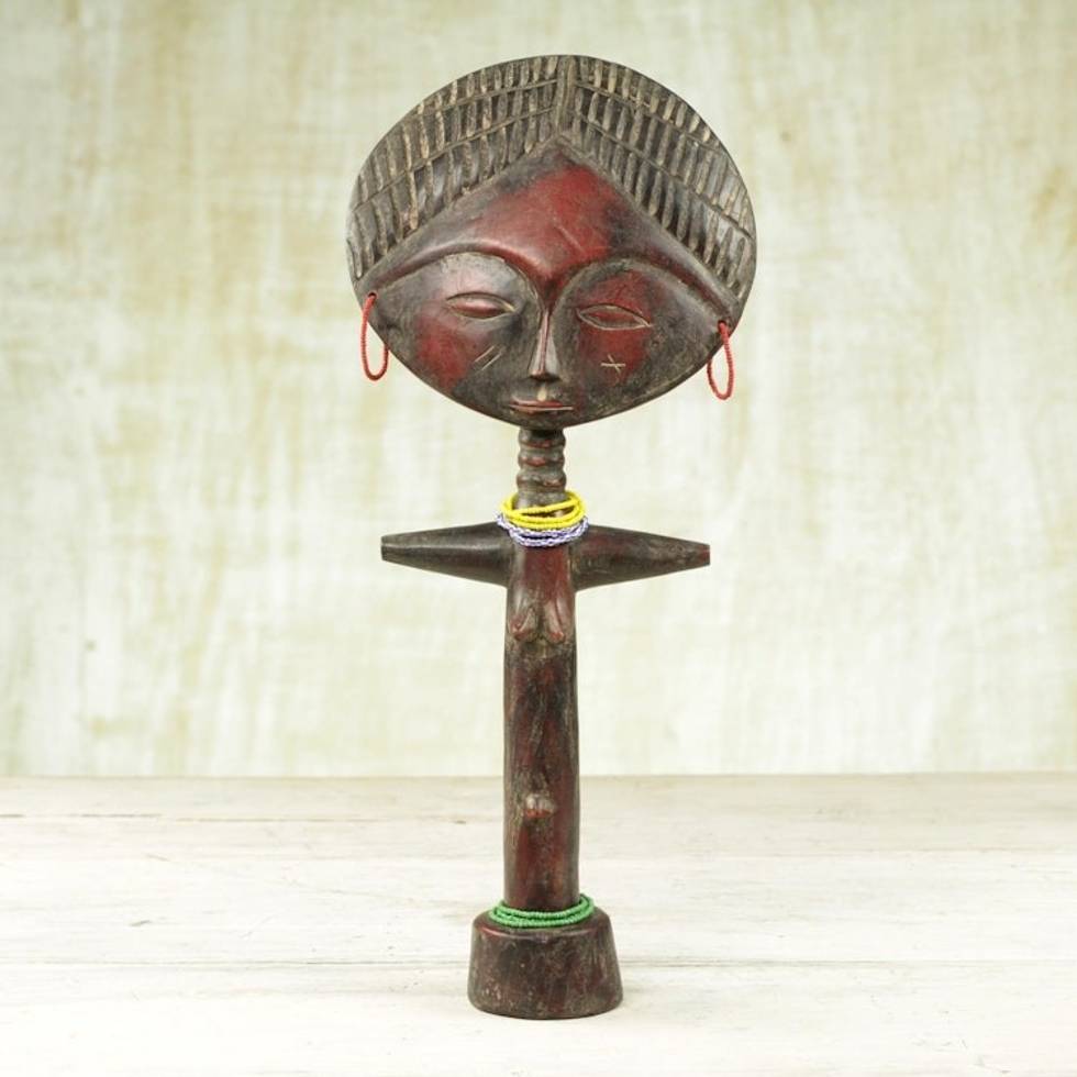 Handcrafted African Sese Wood Doll with Recycled Glass Beads 'Yaa Doll' Item ID: 2671803753