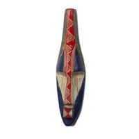 Handcrafted African Sese Wood Mask in Blue and Red 'Amewuga' Item ID: 2671806279