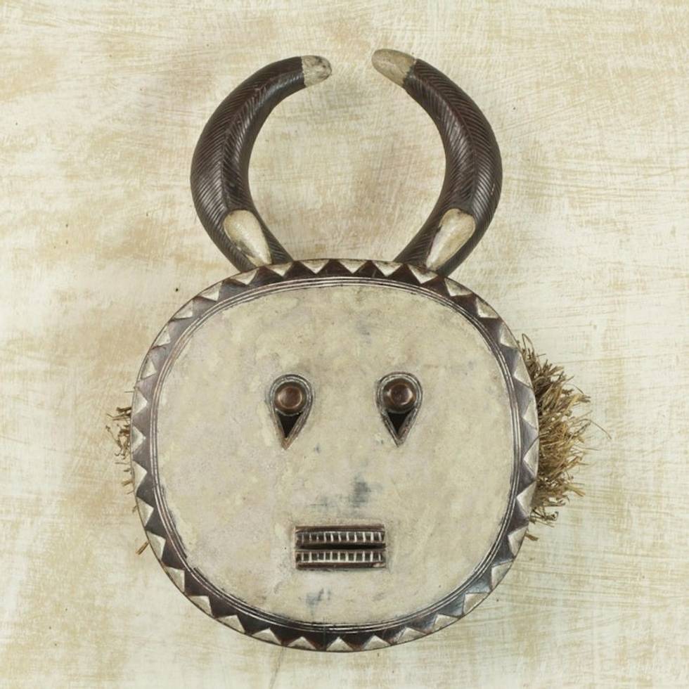 Handcrafted African Sese Wood Mask with Horns from Ghana 'Wan Dance' Item ID: 2671806739