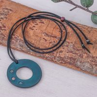 Handcrafted Agate and Leather Pendant Necklace from Thailand 'Lucky Agate Ring' Item ID: 2671797364