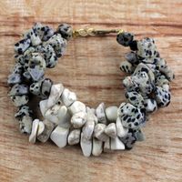 "Turn heads with this stunning beaded bracelet from creative Ghanaian artisan Harriet Faako Adjei. The wonderful accessory features agate chips in off-white and charcoal agate with dark speckles that are mingled together, creating a striking and unique design. The contrasting palette makes the bracelet perfect for a bold look."