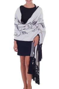 Handcrafted Alpaca White and Grey Reversible Shawl Wrap 'Midnight Wheat' Item ID: 2669891201