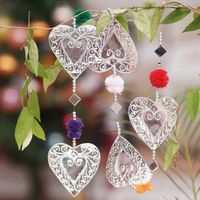 Handcrafted Aluminum Heart Garland with Colorful Pompoms 'Love Colors' Item ID: 2671763424