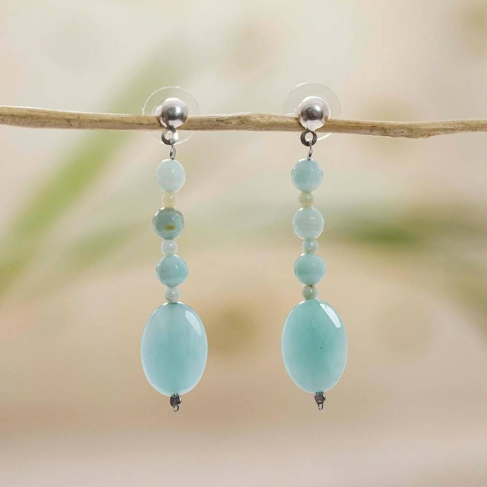 Handcrafted Amazonite Beaded Earrings from Mexico 'Serene Energy' Item ID: 2671808169