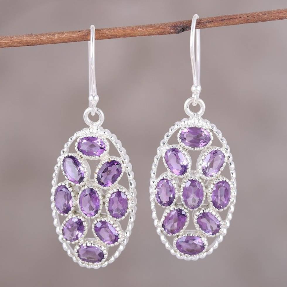 Handcrafted Amethyst and Sterling Silver Dangle Earrings 'Palatial Crest in Violet' Item ID: 2669941899