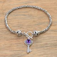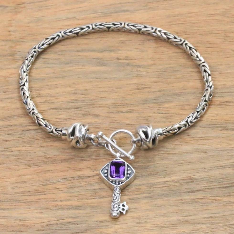 Handcrafted Amethyst and Sterling Silver Key Charm Bracelet 'Beauty Unlocked' Item ID: 2671736838