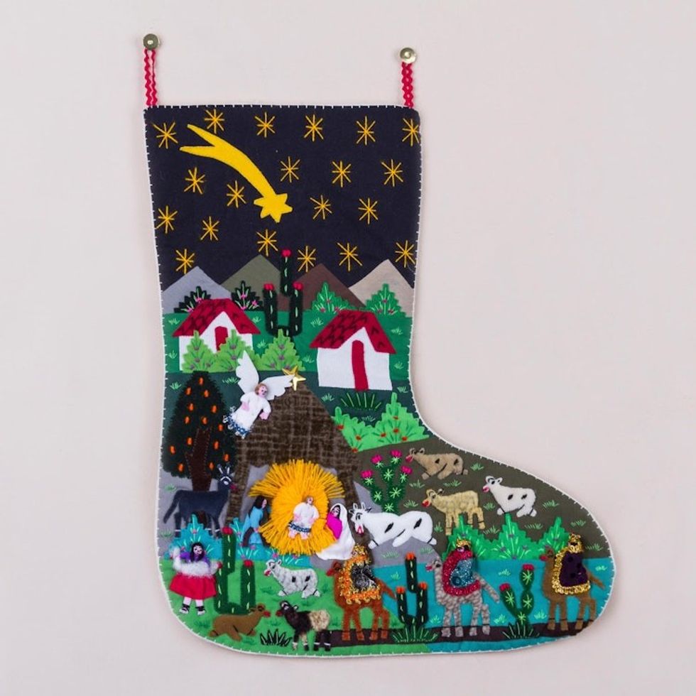 Handcrafted Andean Applique Christmas Stocking 'Village Nativity' Item ID: 2669904557