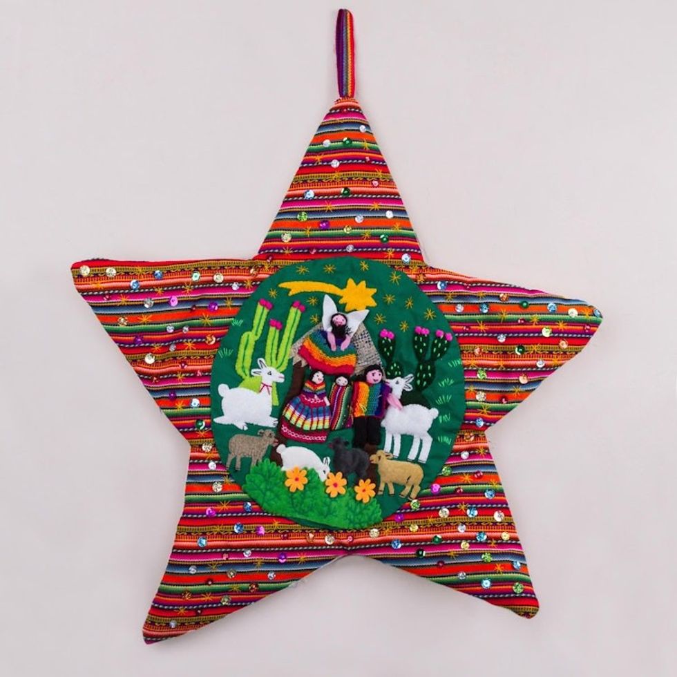 Handcrafted Andean Christmas Star Applique Wall Hanging 'Andean Christmas Star' Item ID: 2669891257