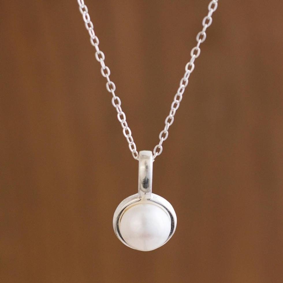 Handcrafted Andean Silver Cultured Pearl Necklace 'Luminous Allure' Item ID: 2671690966