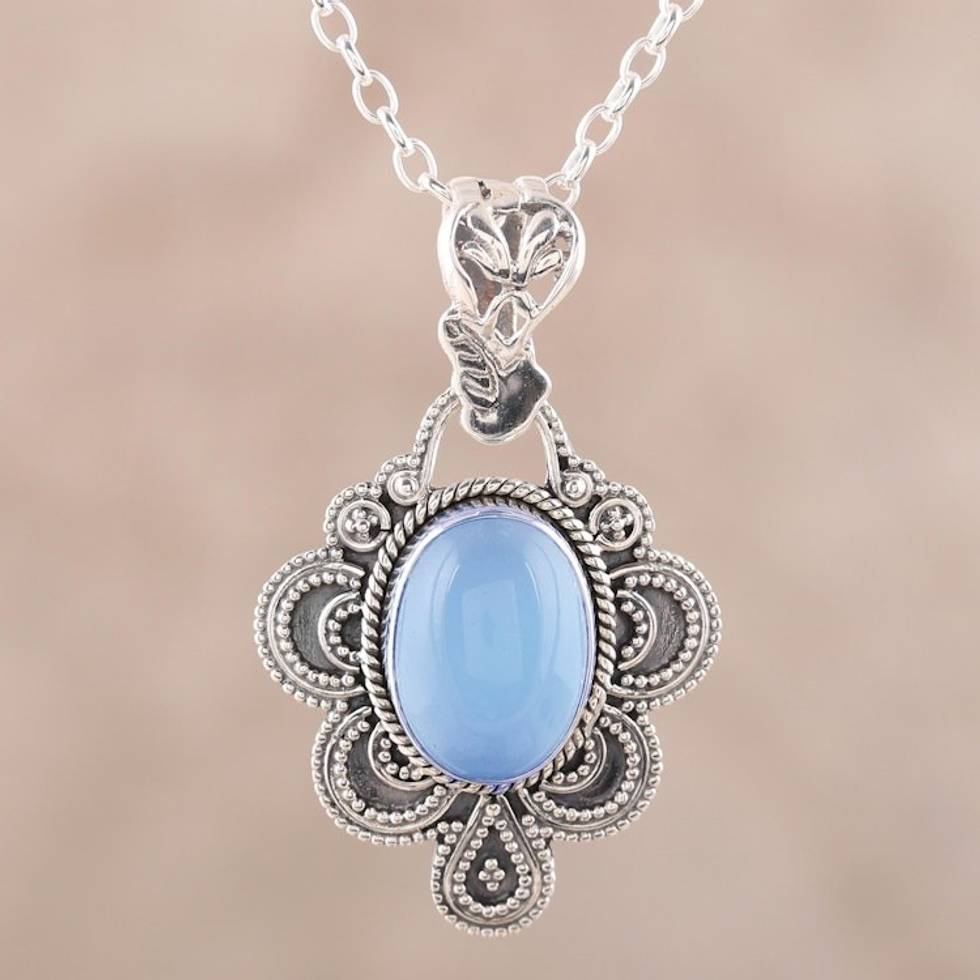 Handcrafted Antique Style Silver and Chalcedony Necklace 'Blue Antique Radiance' Item ID: 2671793788
