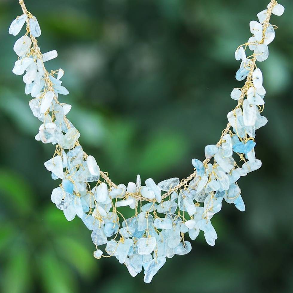 Handcrafted Aquamarine Beaded Waterfall Necklace in Blue 'Everlasting Waters' Item ID: 2669928668