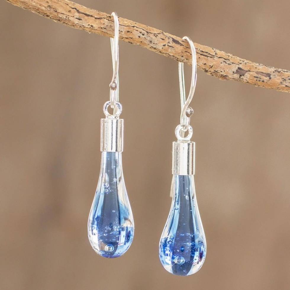 Handcrafted Art Glass Dangle Earrings from Costa Rica 'Blue Bay' Item ID: 2669923643
