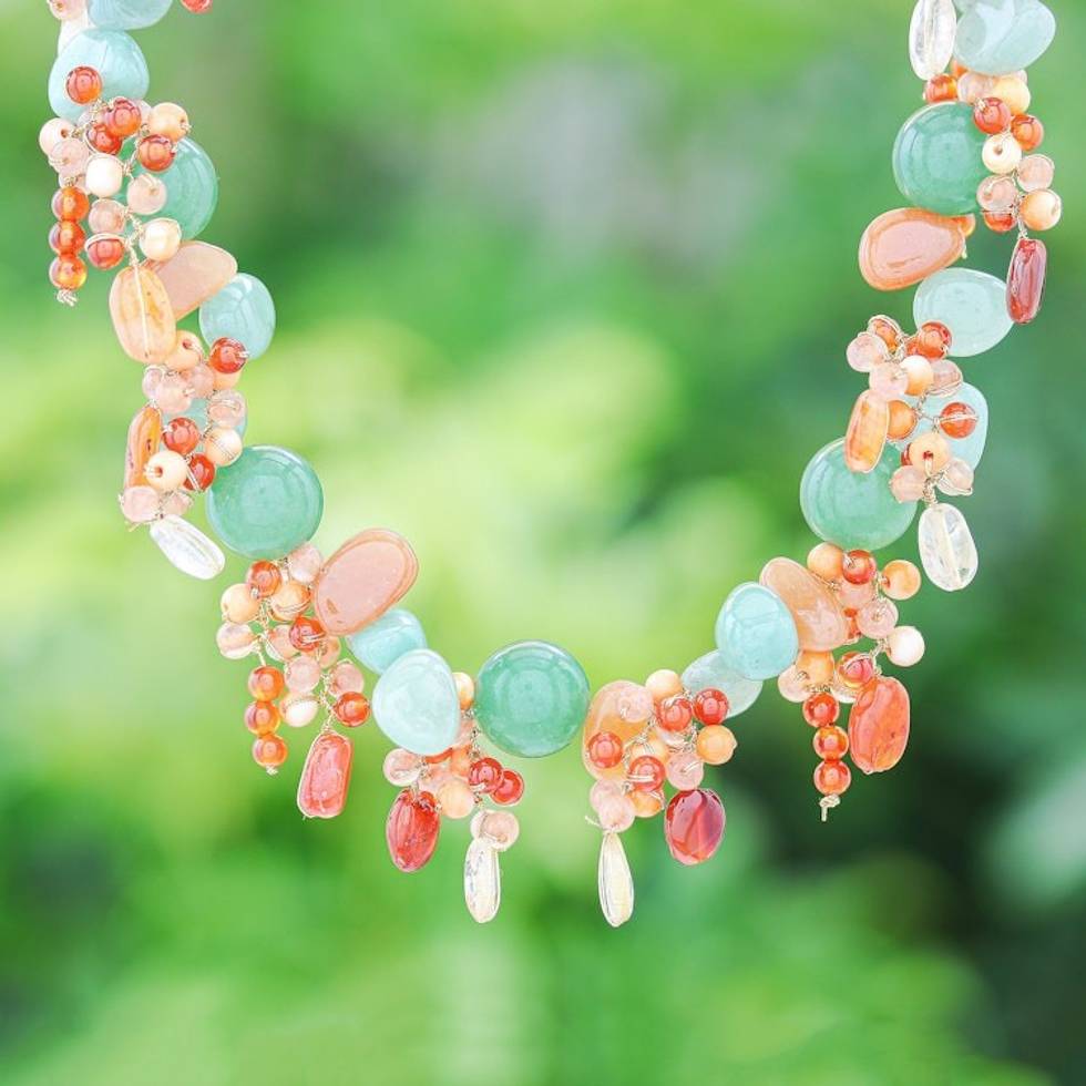 Handcrafted Aventurine and Chalcedony Beaded Necklace 'Bright Garden' Item ID: 2669926311
