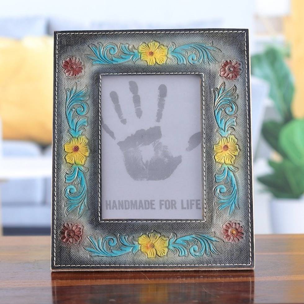 Handcrafted Azure and Turquoise Leather Photo Frame 4x6 'Dream of Spring' Item ID: 2671781433