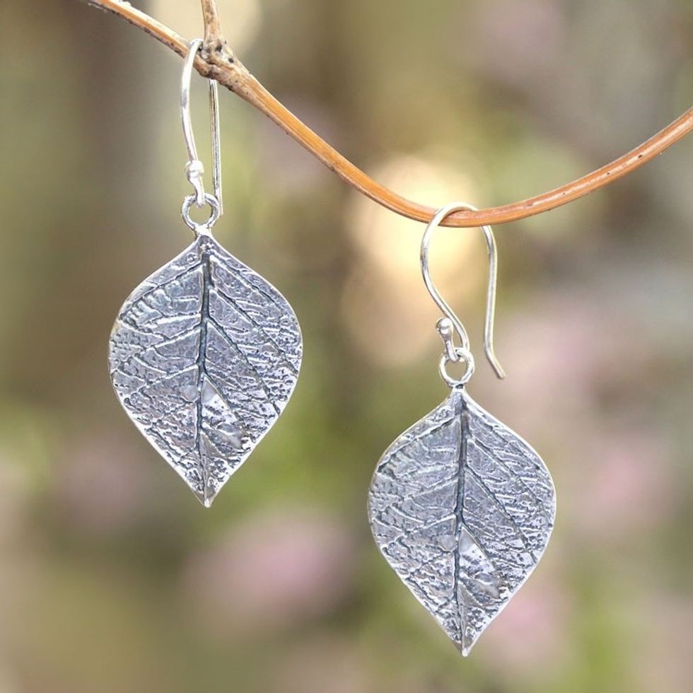 Handcrafted Balinese Leaf Theme Silver 925 Earrings 'Mangrove Leaf' Item ID: 2671744736
