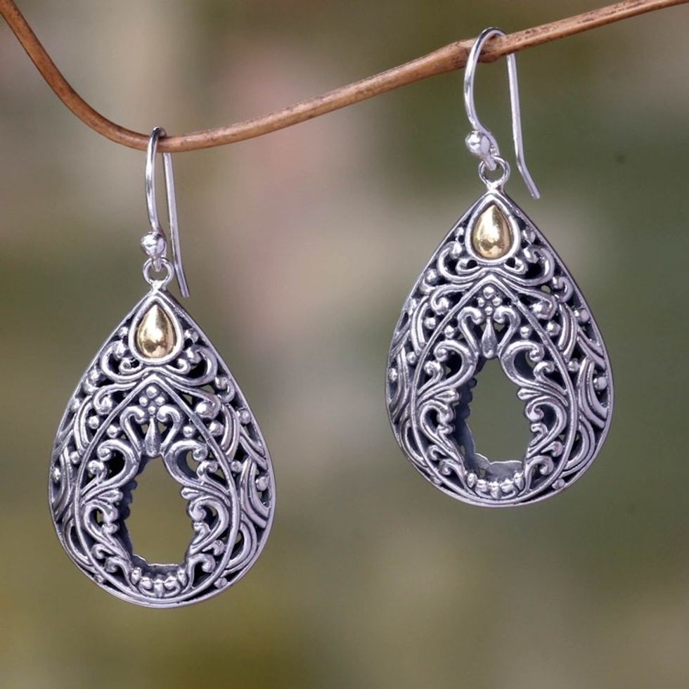 Handcrafted Balinese Silver Dangle Earrings with 18k Gold 'Balinese Lace' Item ID: 2669887148
