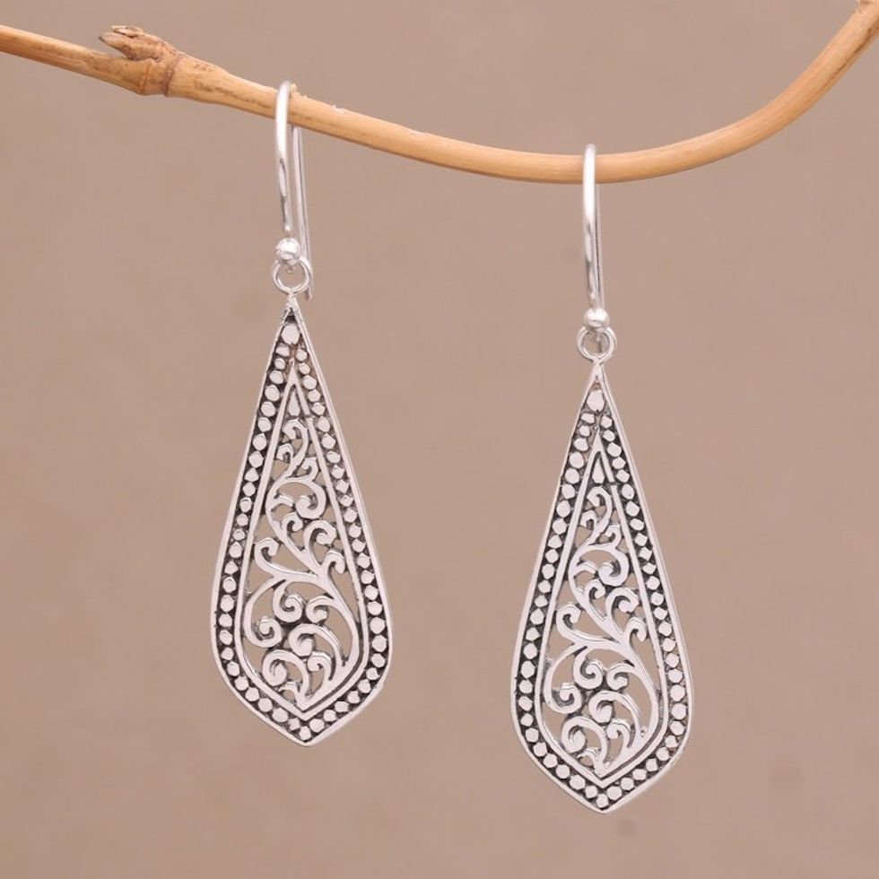 Handcrafted Balinese Sterling Silver Dangle Earrings 'Ornate Teardrop' Item ID: 2671736914