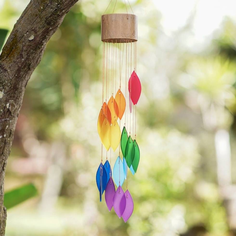 Handcrafted Bamboo and Glass Wind Chime in Rainbow Hues 'Summer Blast' Item ID: 2671555228