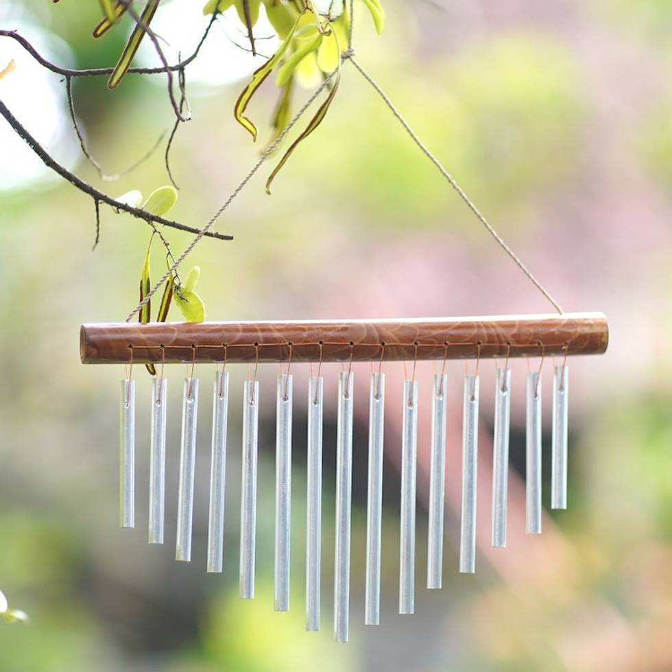 This simple but carefully crafted wind chime is made with aluminum pipes beneath rods of bamboo. It makes a very attractive and soothing addition on my outdoor patio. I have very fond memories of a trip l took to Bali long ago, and I'm so pleased to hear the gentle sound created by the chime.