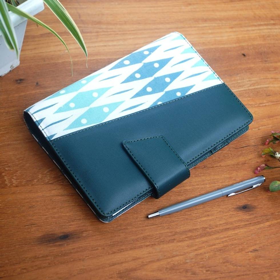 Handcrafted Batik Faux Leather Planner in Green from Java 'Ivy Geometry' Item ID: 2671558128